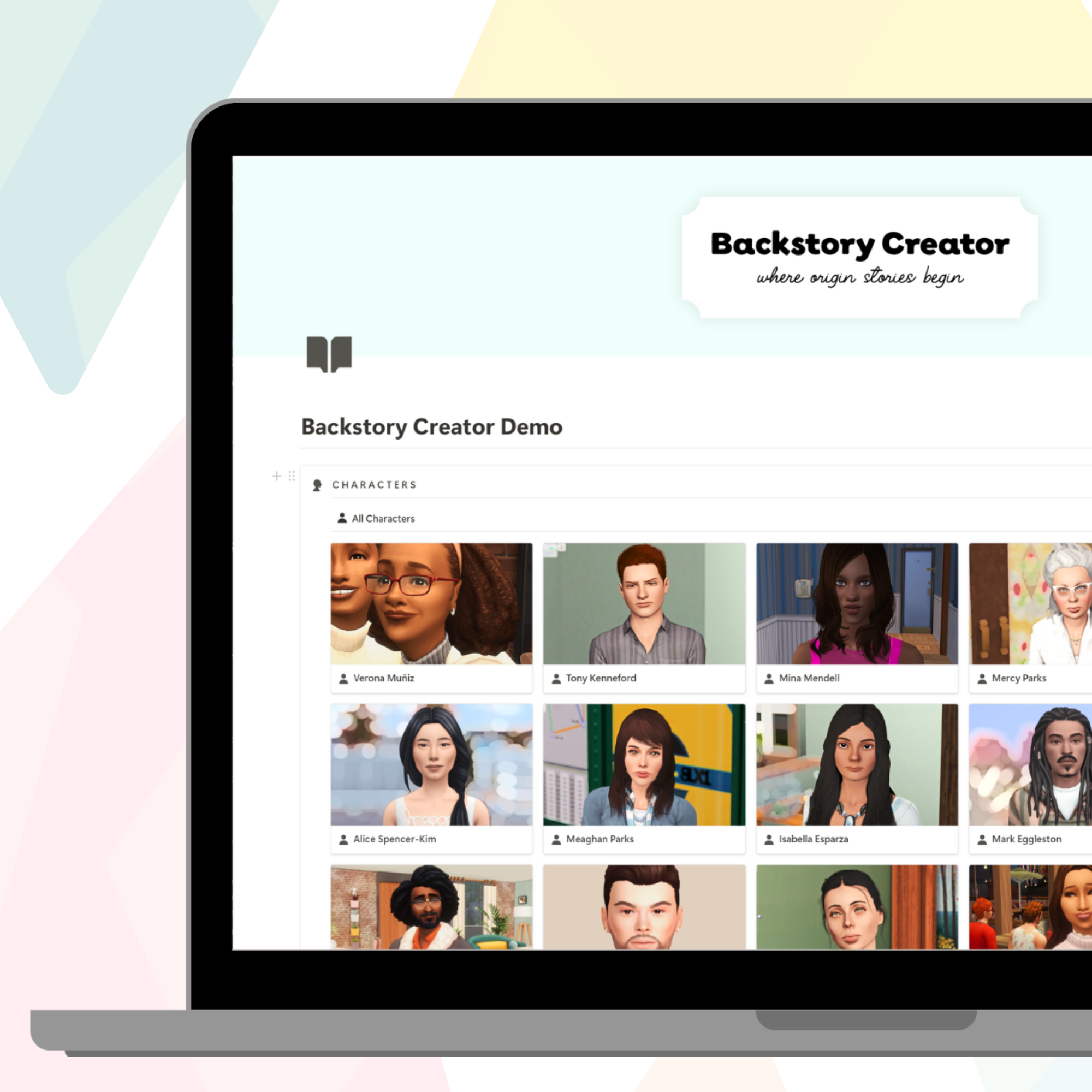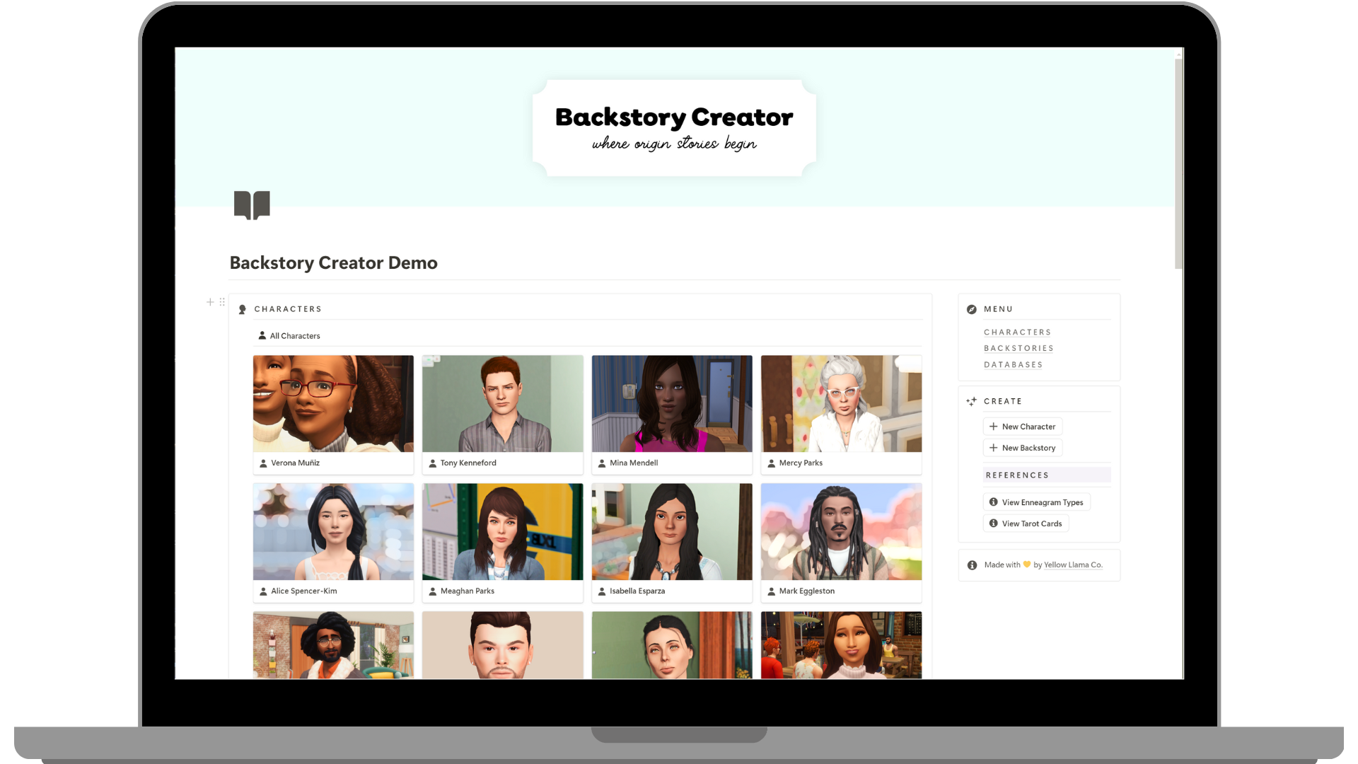 Use the Enneagram and tarot card prompts in my Backstory Creator template to create origin stories for your pixel people–so they feel real right from the start. The Notion template includes a character library to save your stories (plus a backstory AI prompt for busy Simmers!).