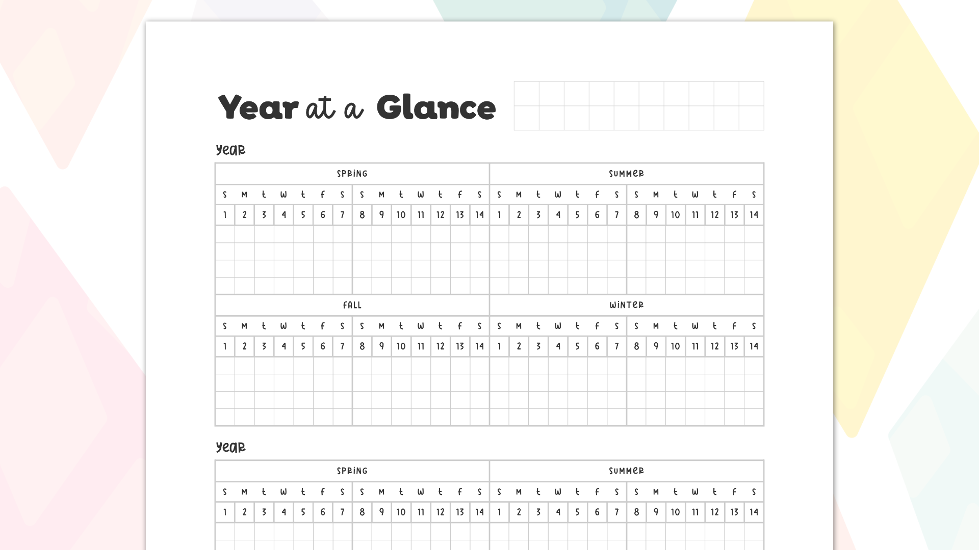 Year At A Glance PrintableKeep track of how much time has passed in your game ⌛