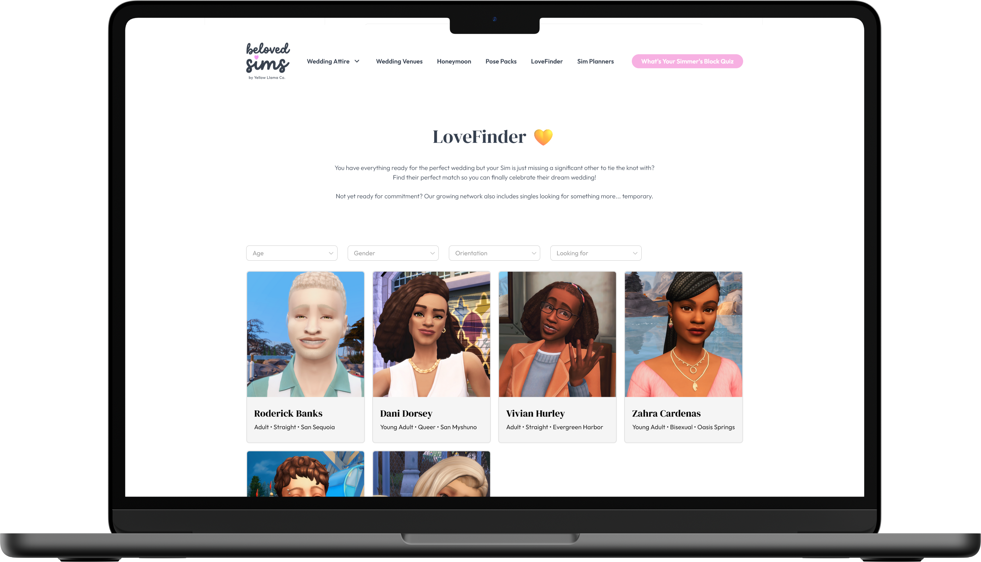 You have everything ready for the perfect wedding but your Sim is just missing a significant other to tie the knot with? Find their perfect match on LoveFinder so you can finally celebrate their dream wedding!