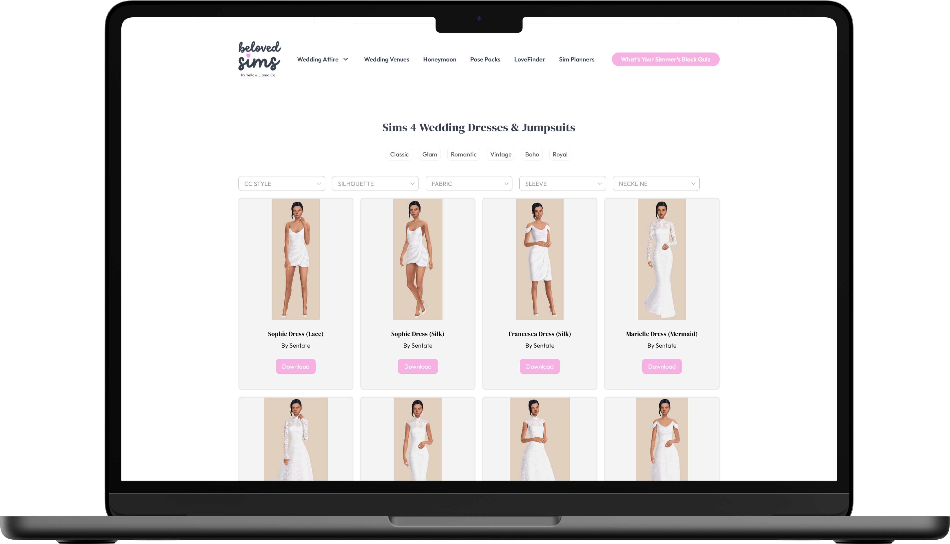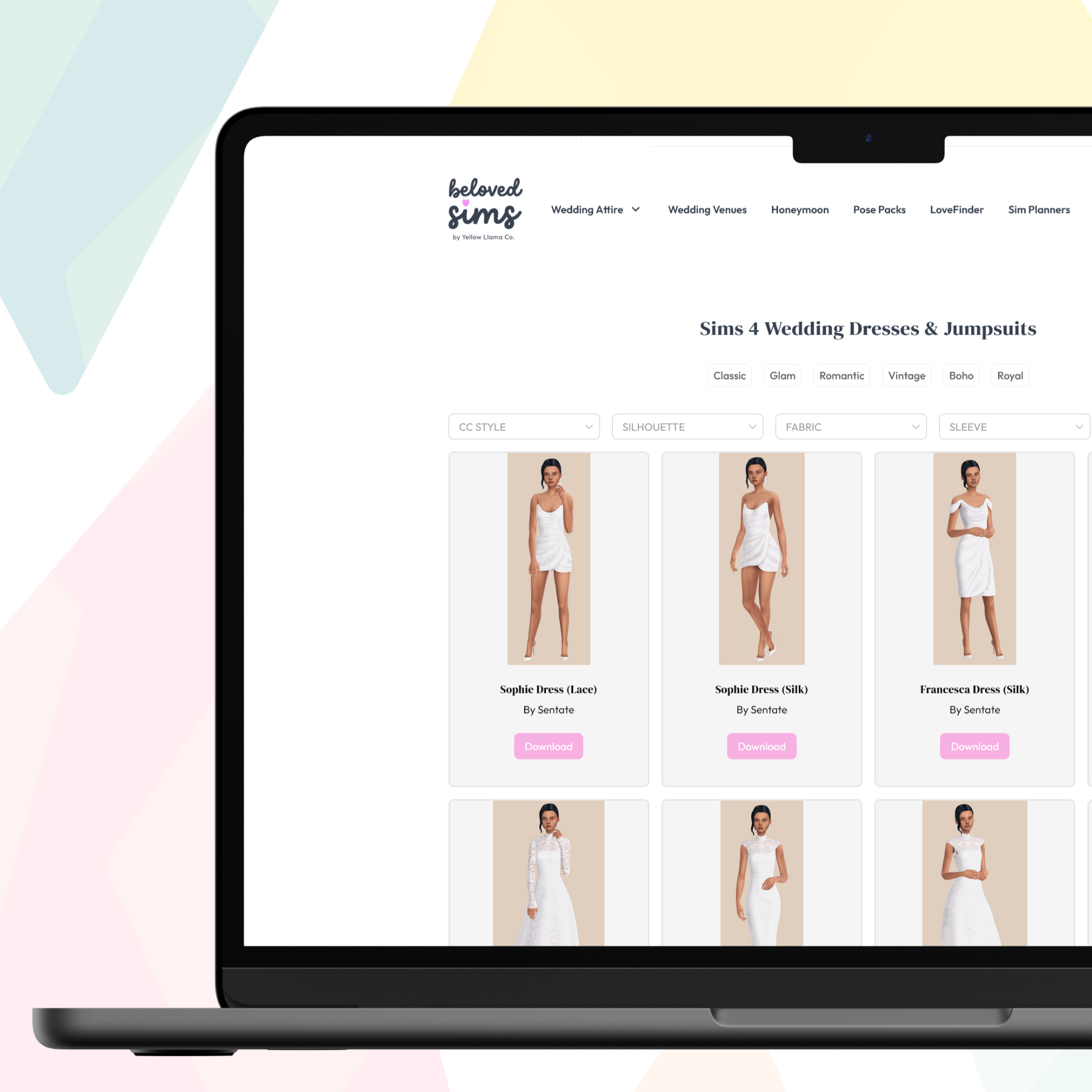 The Sims community has created so much great wedding content but it's all scattered across the interwebs. So I decided to create a database to bring it all together.
